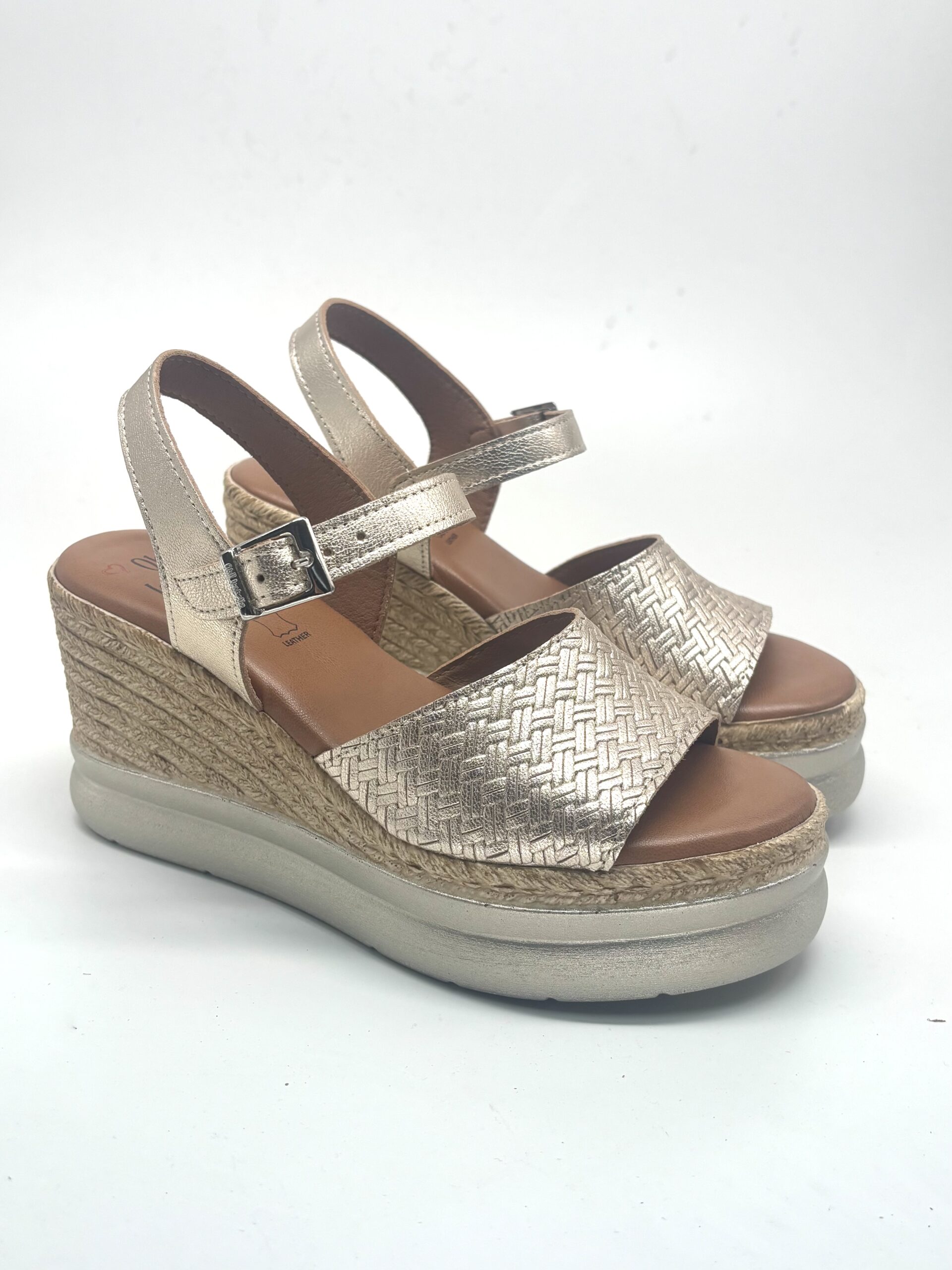 Tipo: sandalia de cuña con pala ancha.